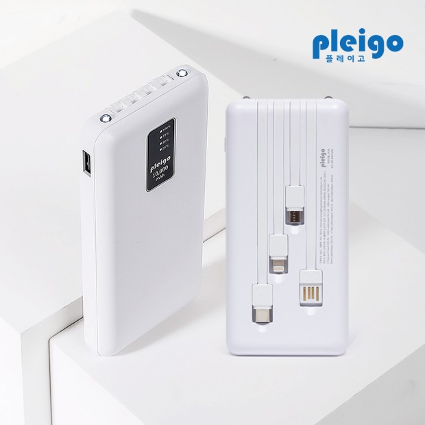 • [플레이고] B411 4in1 탈부착 케이블 일체형 보조배터리 10000mAh 1P