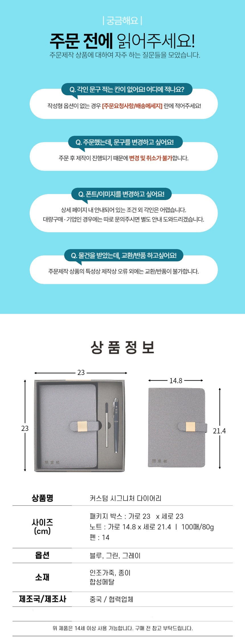 노트: 148*214mm/패키지박스 : 230*230mm