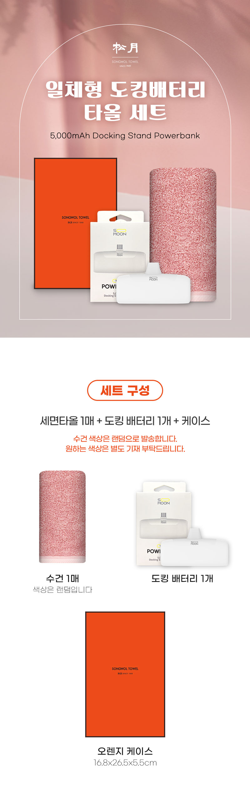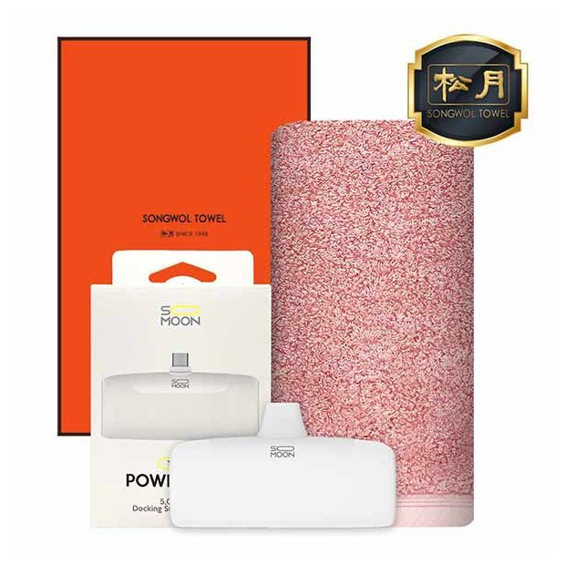 • 송월 도킹 보조배터리 5000mAh 세트 (40수 180g 타올 1매 + 도킹보조배터리 1개)