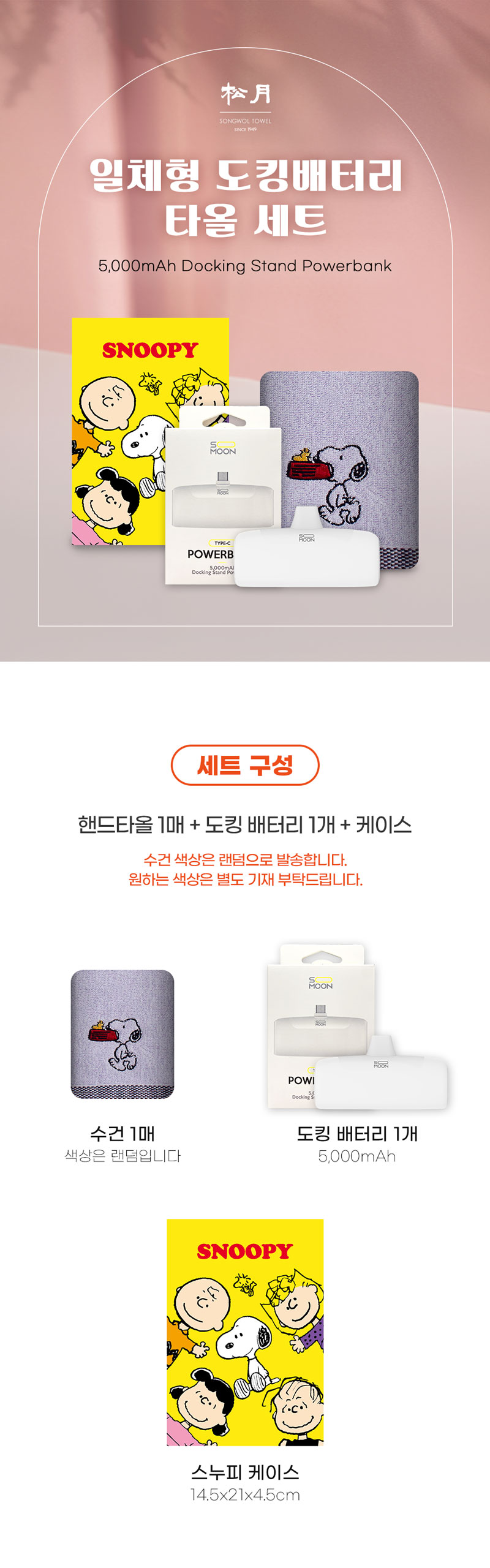 • 송월 도킹 보조배터리 5000mAh 세트 (블럭블랙34 타올 1매 + 도킹보조배터리 1개)