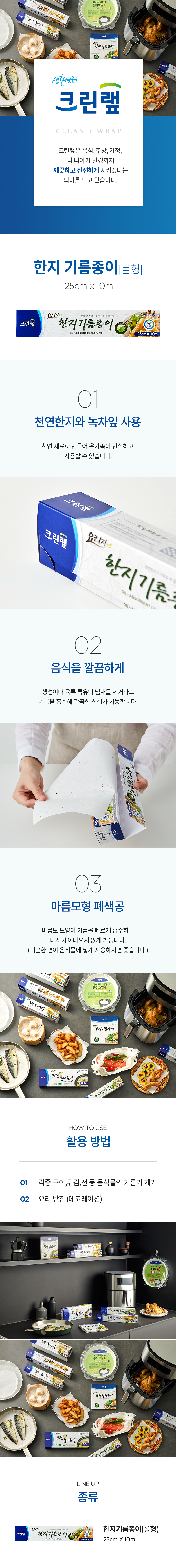 • 크린랩 한지기름종이 롤형 25cmX10m 크린랲 기름종이