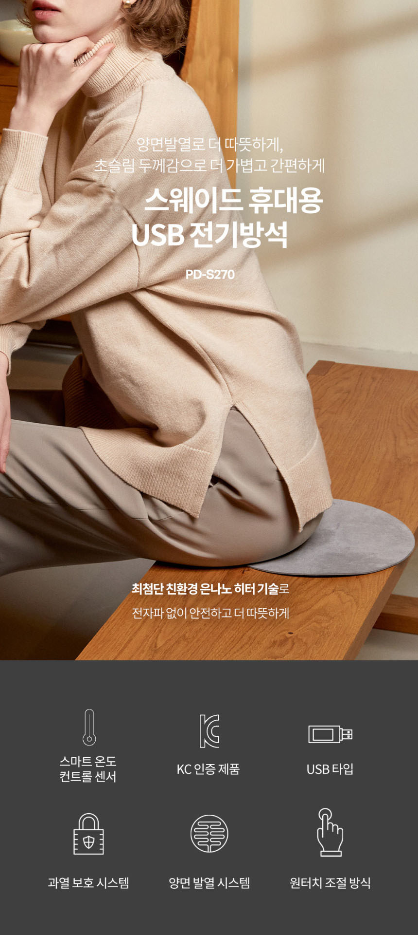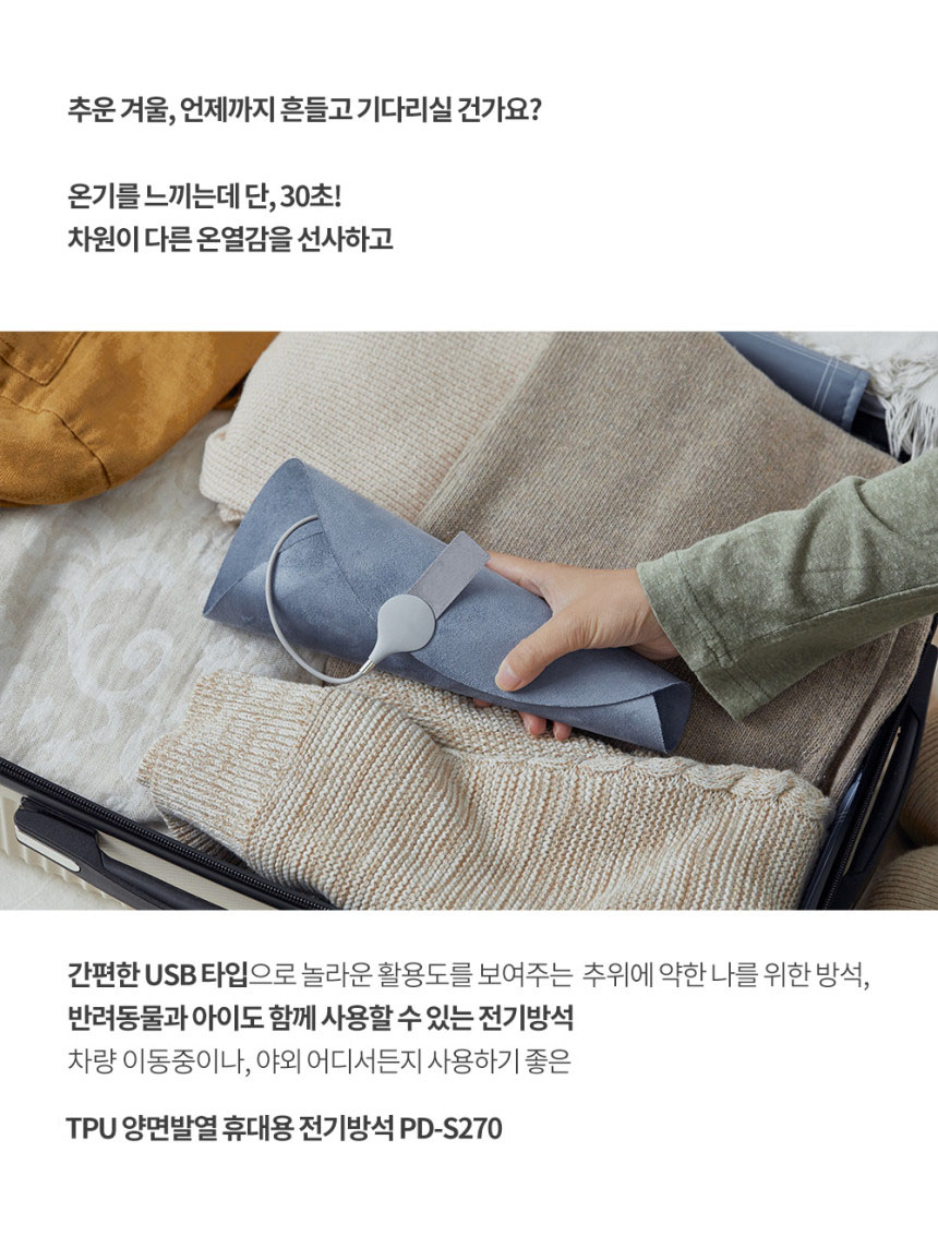 • 스웨이드 휴대용 USB 전기방석 PD-S270
