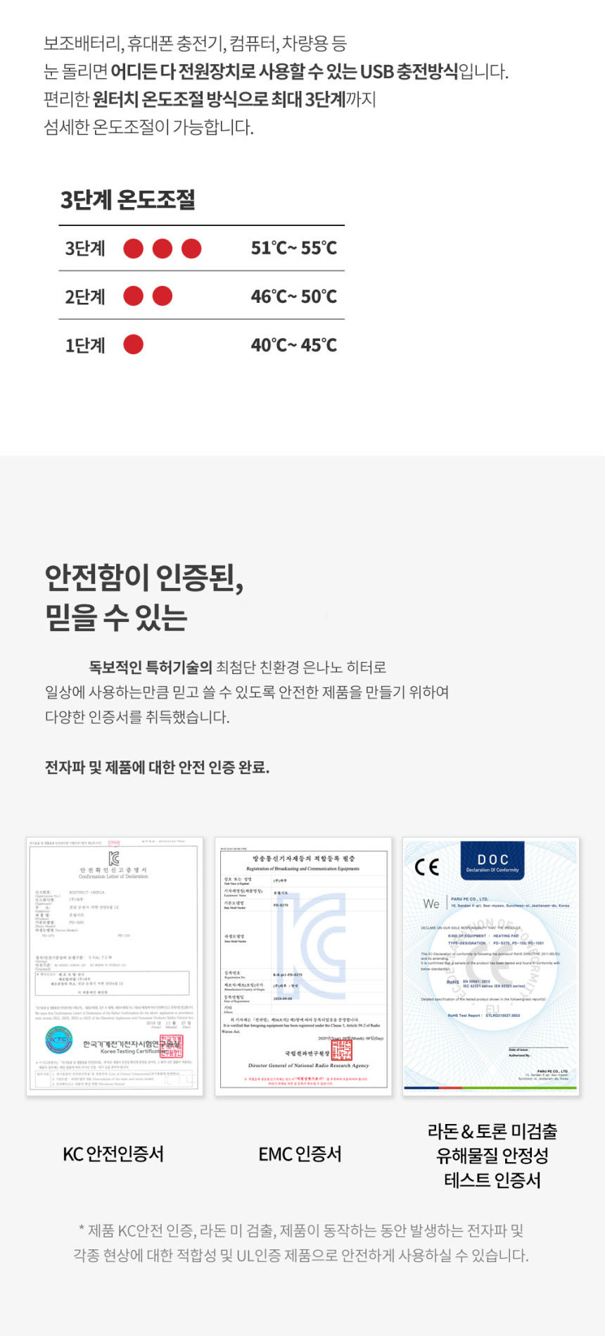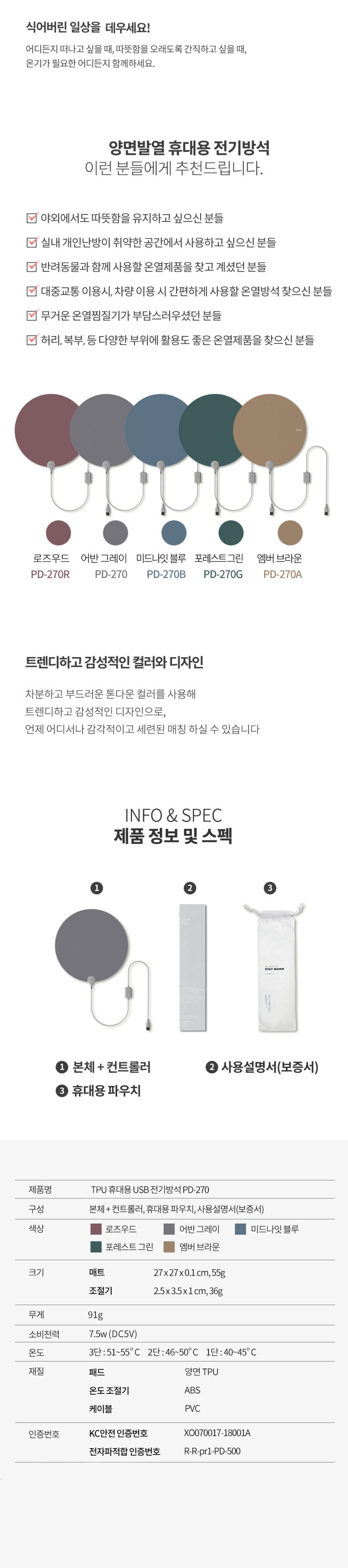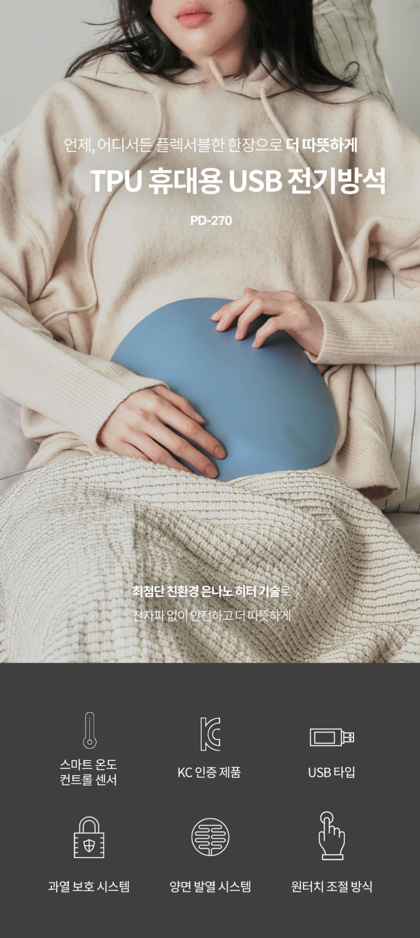 • TPU 휴대용 USB 전기방석 PD-270