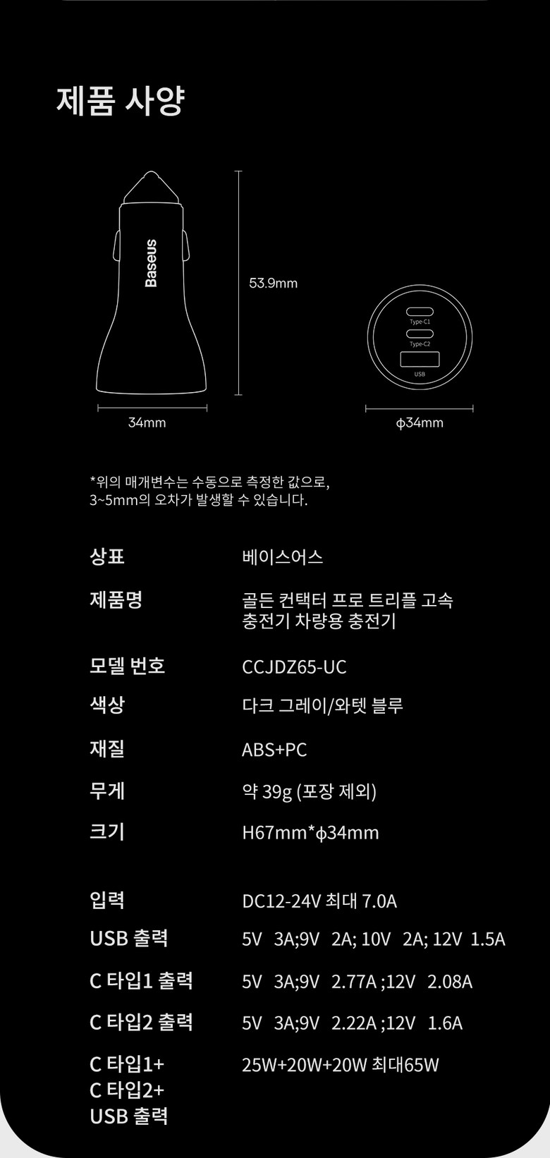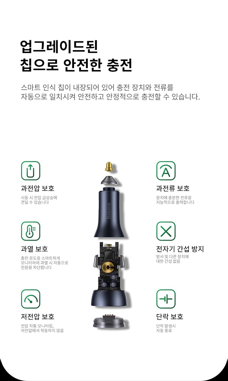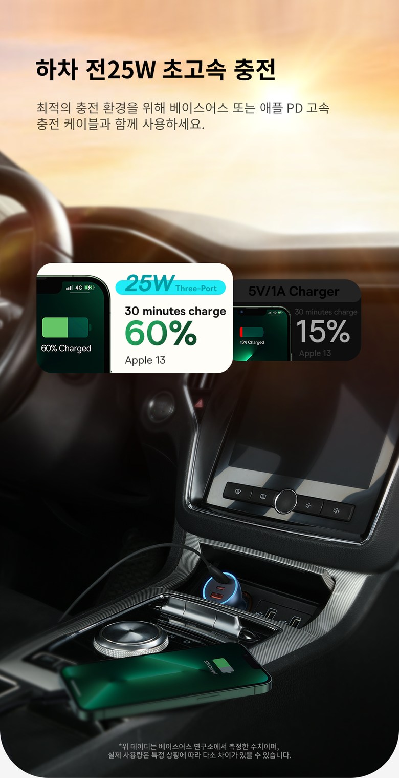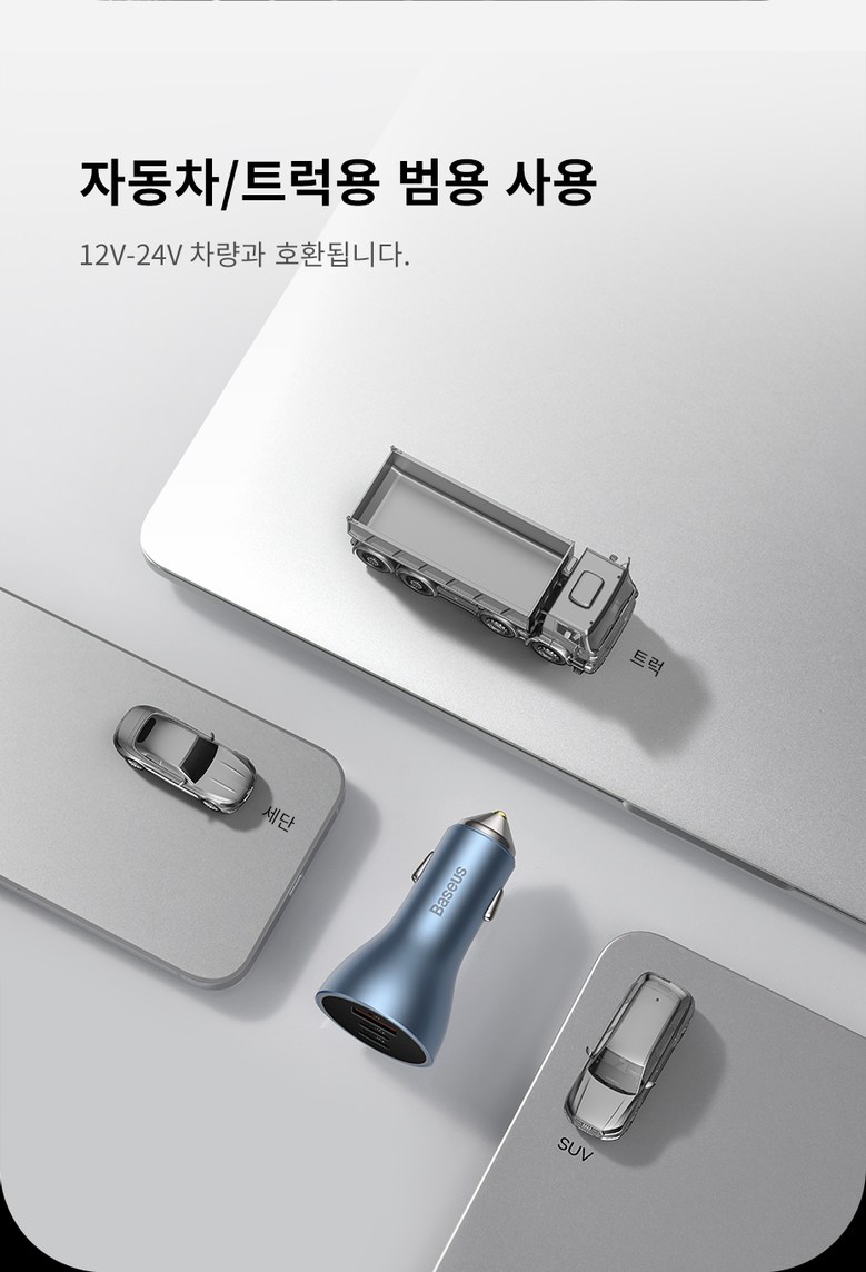 • 베이스어스 차량용 충전기 자동차 시거잭 차량 고속 충전 3포트 USB C타입 65W