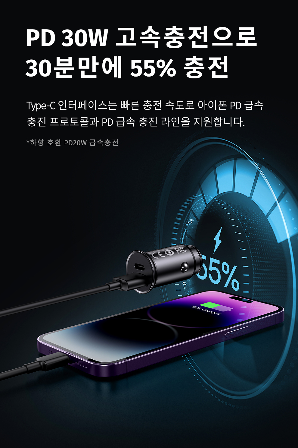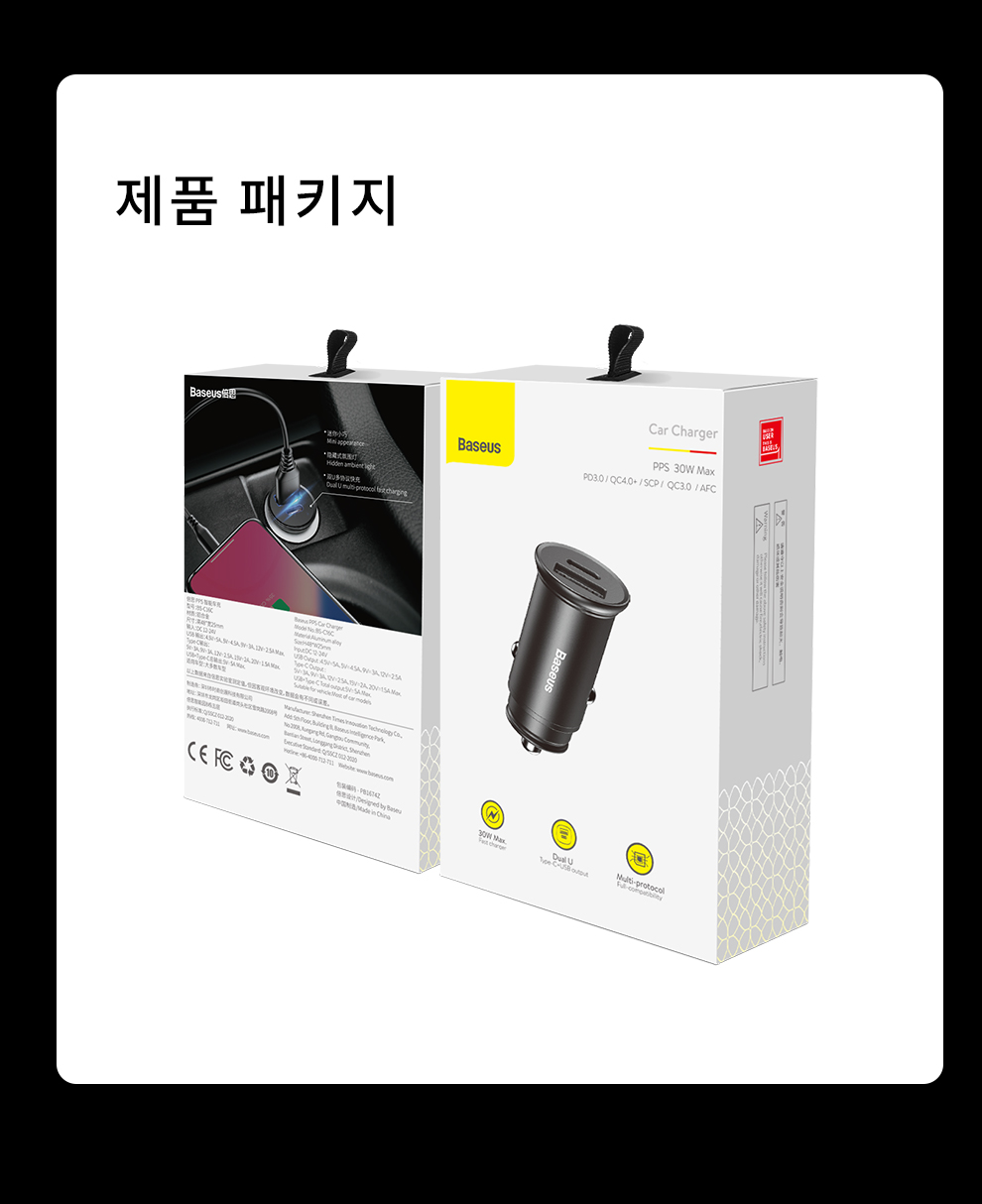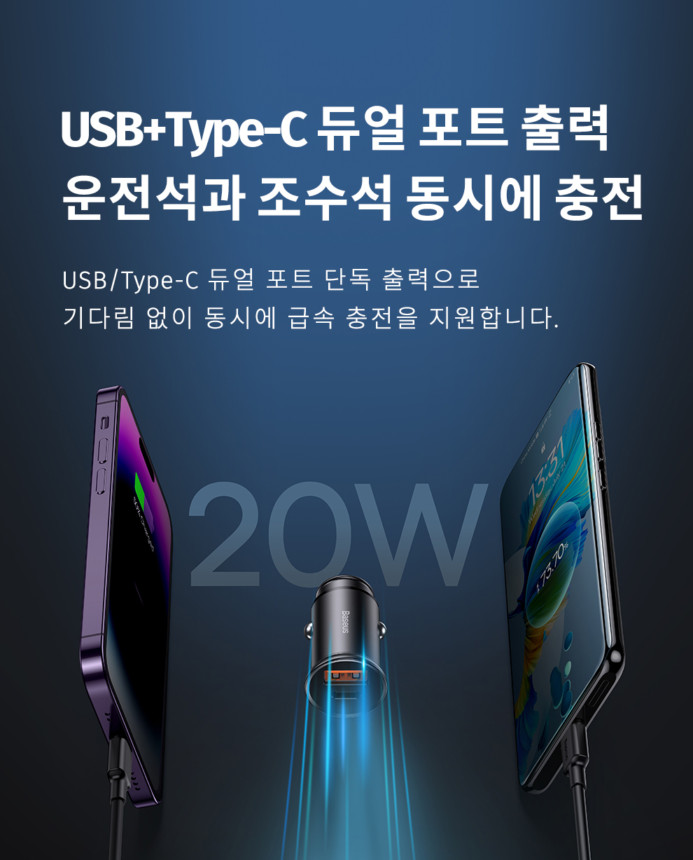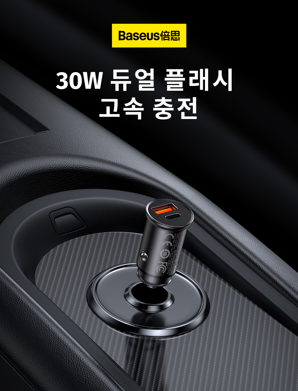 • 베이스어스 차량용 고속 충전기 듀얼 차량 자동차 시거잭 USB+C타입 30W PD3.0