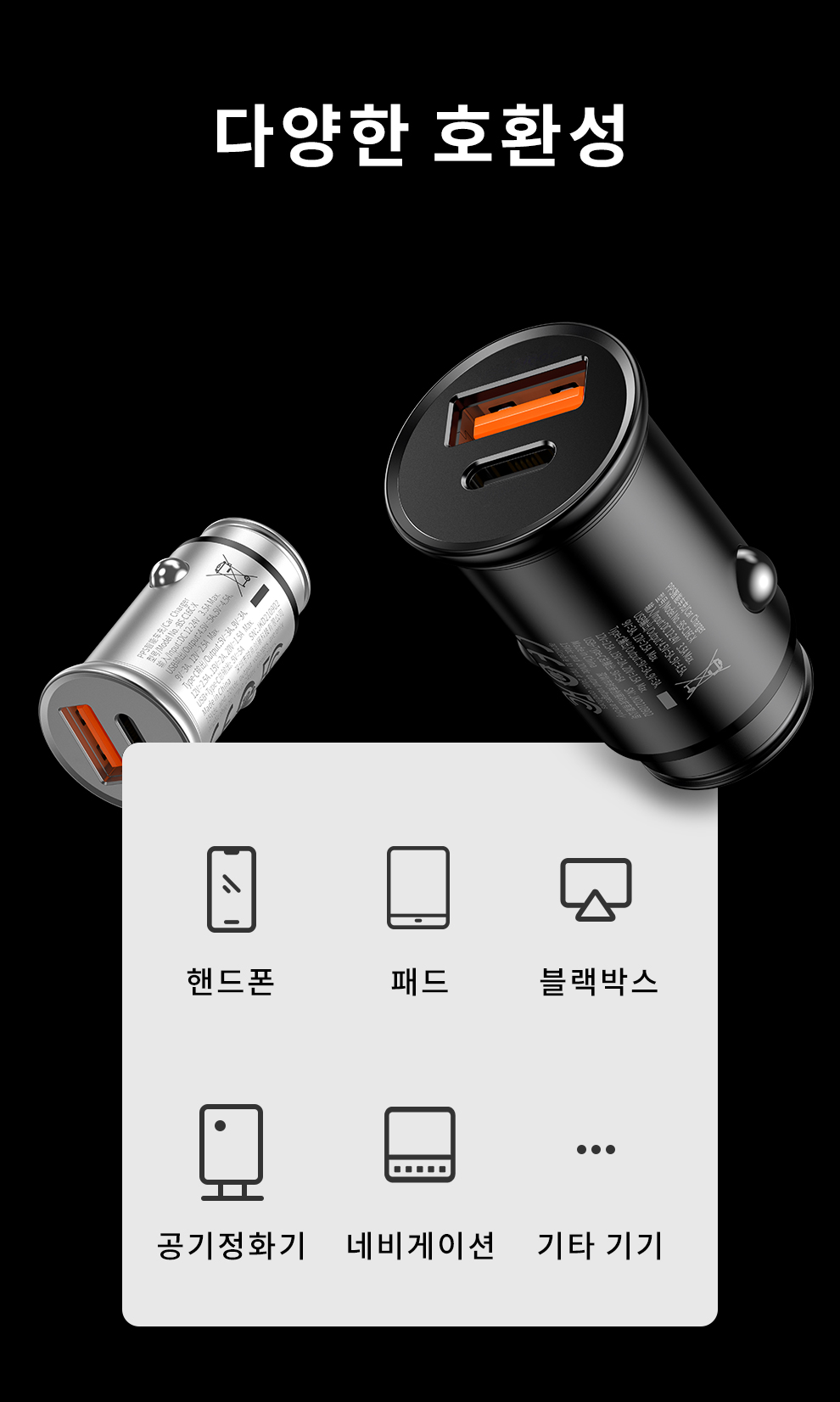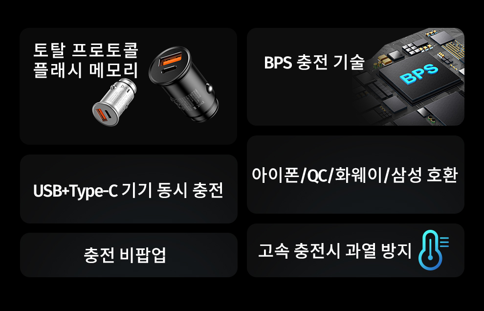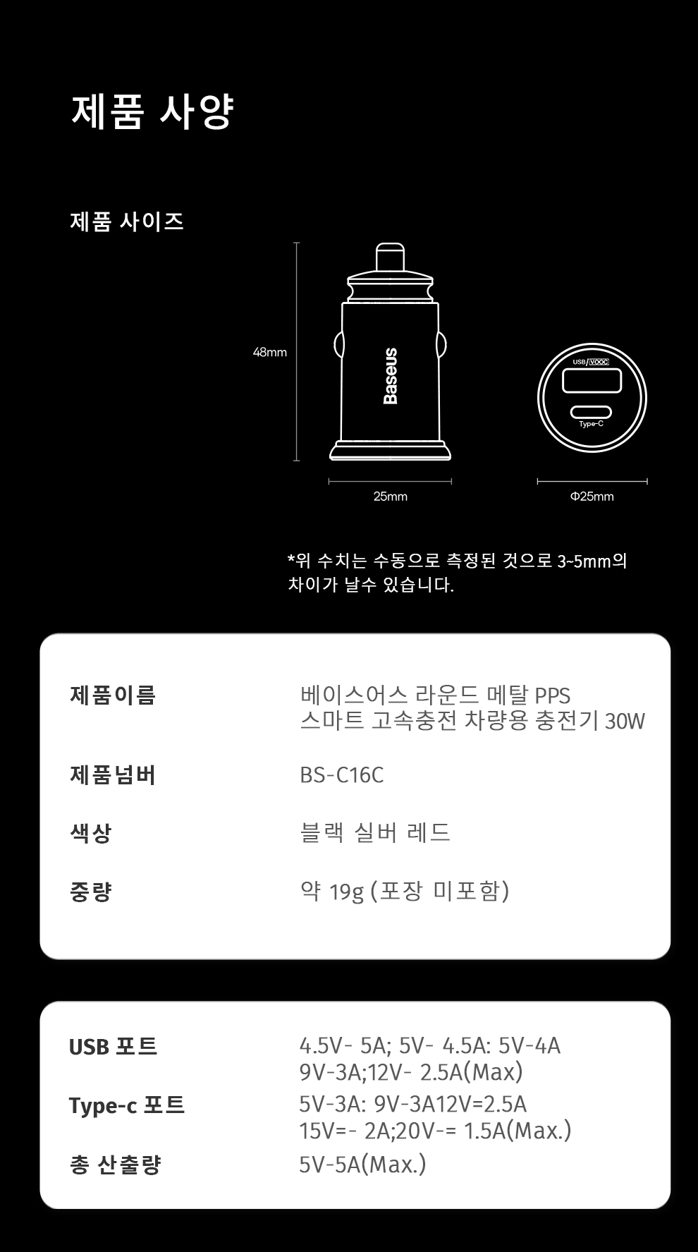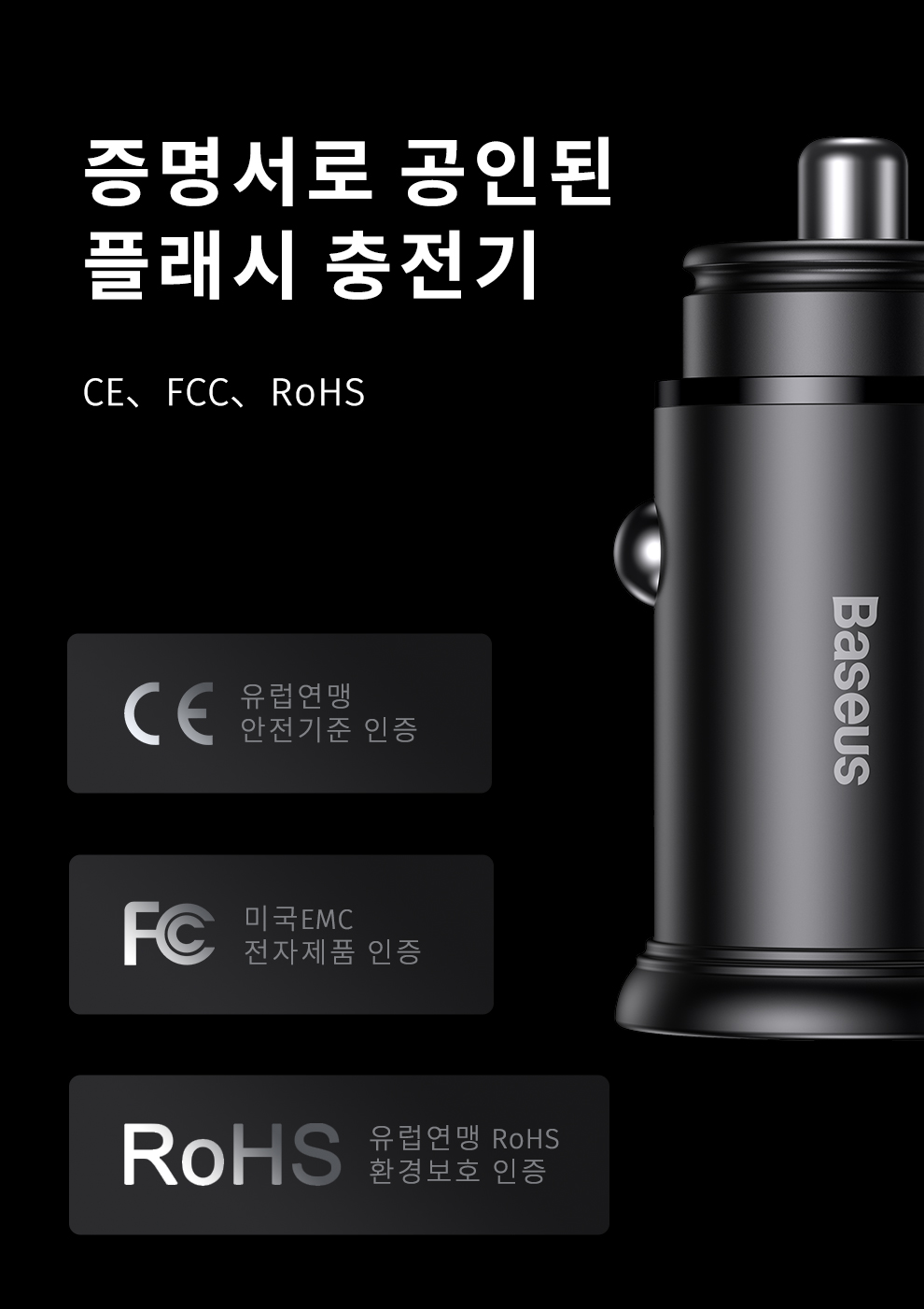 • 베이스어스 차량용 고속 충전기 듀얼 차량 자동차 시거잭 USB+C타입 30W PD3.0