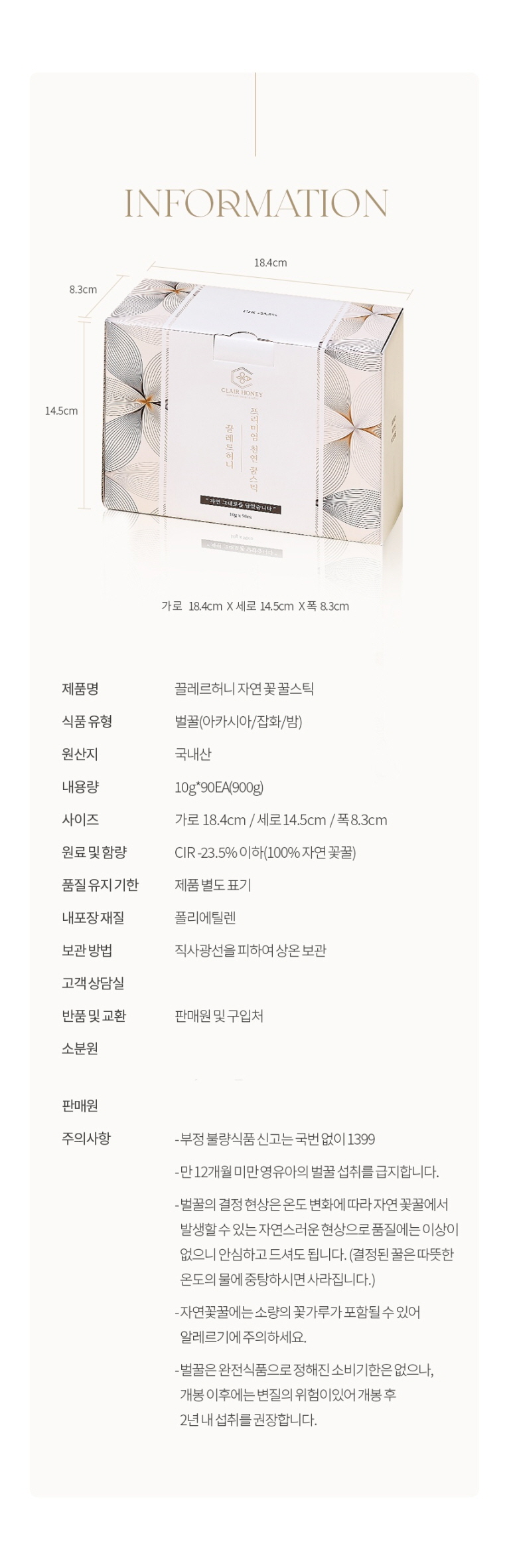 • 끌레르허니 꿀스틱 올인원 90포 국산 천연벌꿀