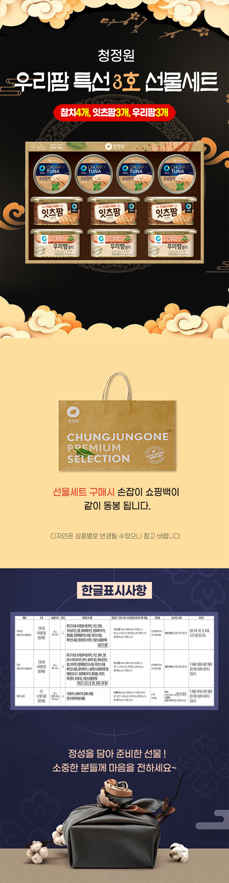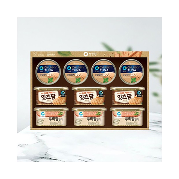 • 청정원 우리팜 델리190g * 3개+잇츠팜 190g * 3개+순살참치 135g * 4개 단체 선물세트, 명절 스햄 햄 참치 동료 친정