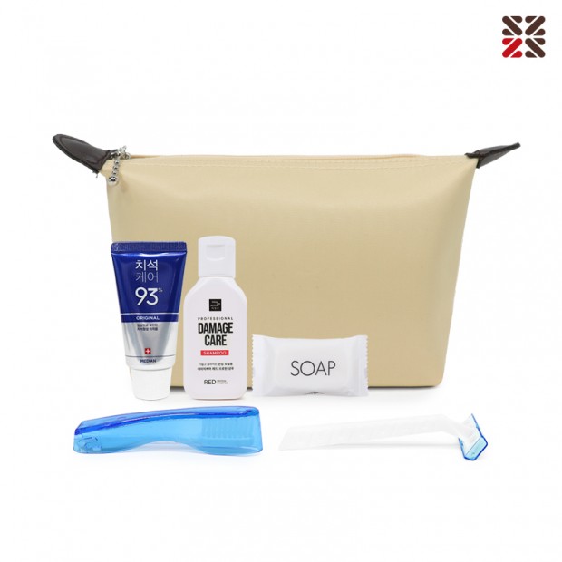 미장센샴푸50g, 비누, 칫솔, 치약40g, 면도기, 종이케이스