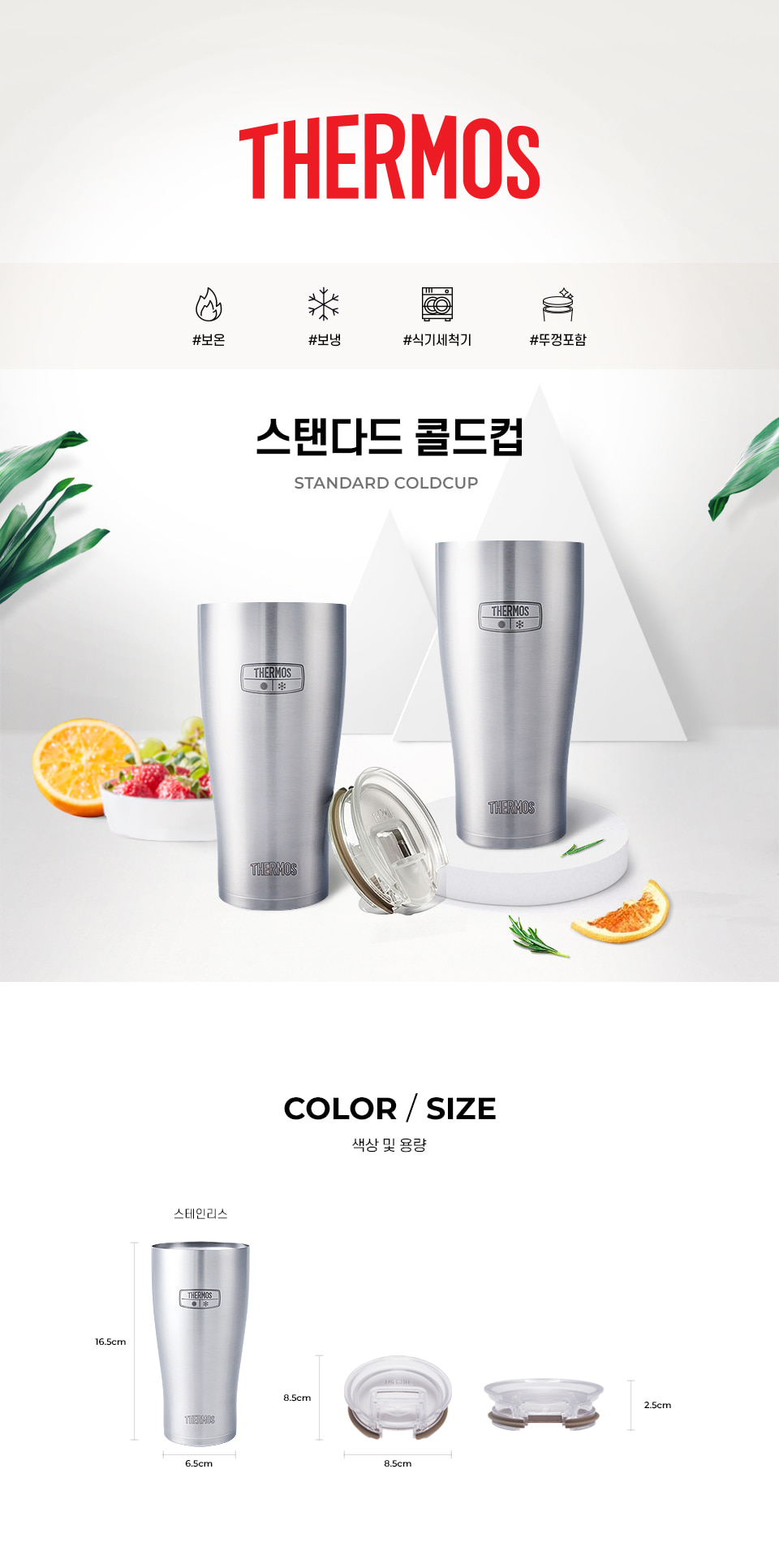 • 써모스 진공단열 스탠다드 콜드컵 JDE-600KL-뚜껑포함