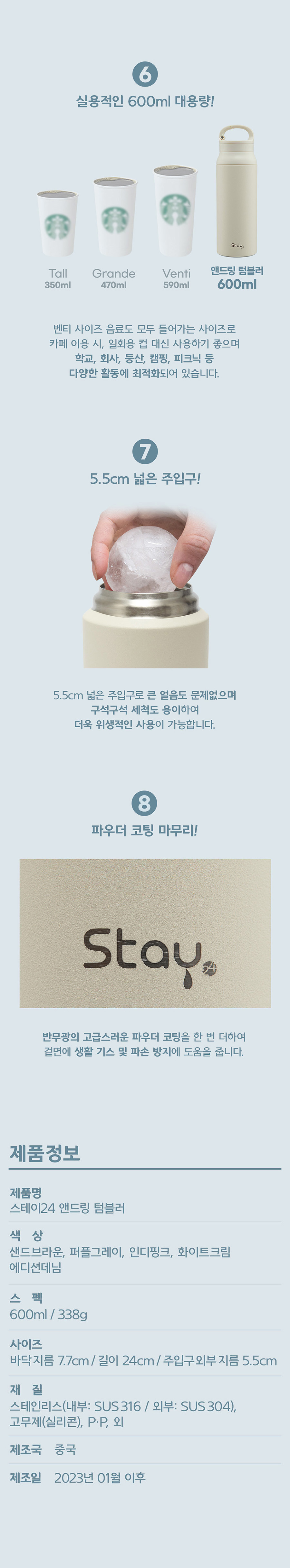 • 스테이24 2중 밀폐마개 앤드링 대용량 텀블러 600ml