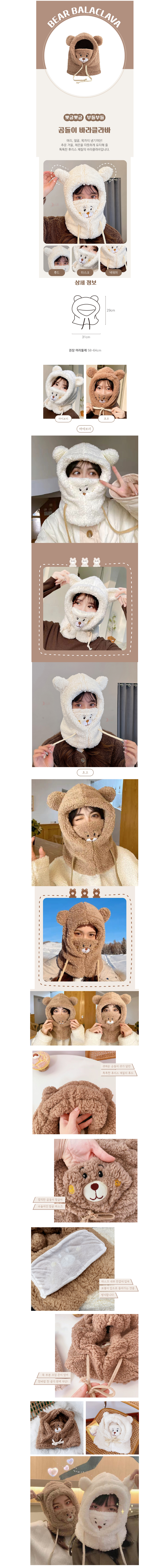 • 곰돌이 바라클라바 귀여운 털모자 겨울 모자 워머 넥워머 목토시 후드워머 겨울넥워머 후드모자 방한용품