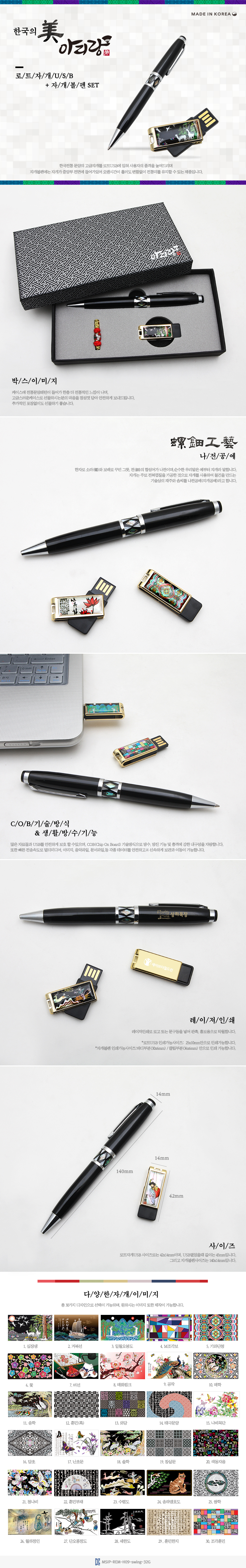 • 아리랑 로트자개 USB+자개 볼펜 2종세트(4GB~128GB)