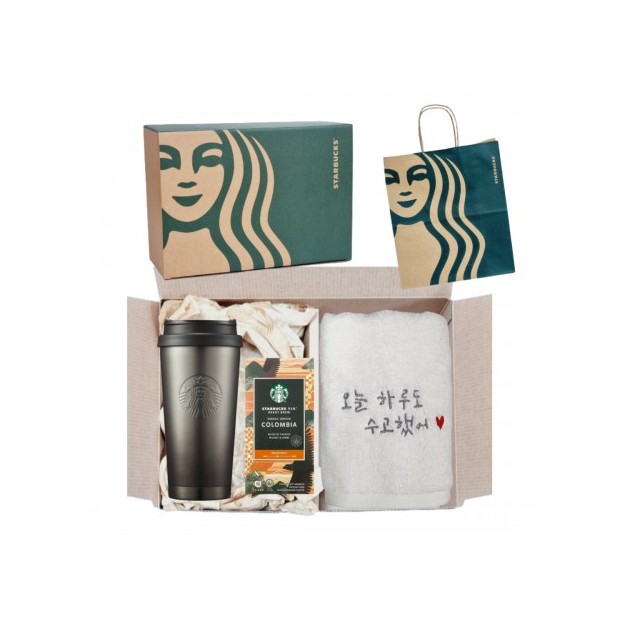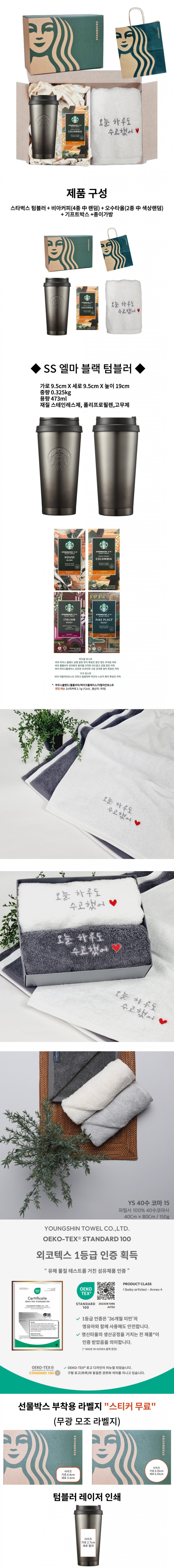 • 스타벅스 SS 엘마 블랙 텀블러 + 오수 영신 타올 호텔 수건 선물세트 + 비아커피