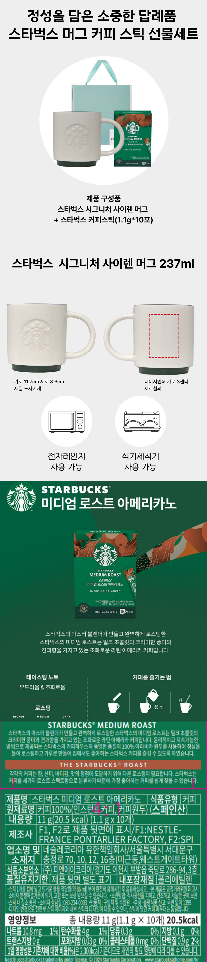 • 스타벅스 시그니처 사이렌 머그 237ml+스타벅스 아메리카노 스틱커피 10개입 세트