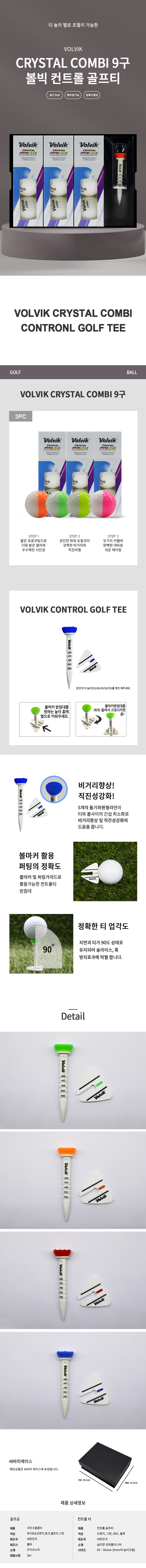 • 볼빅 크리스탈 콤비 9구 에이밍 컨트롤 골프티 높이 조절티세트 (3pc)