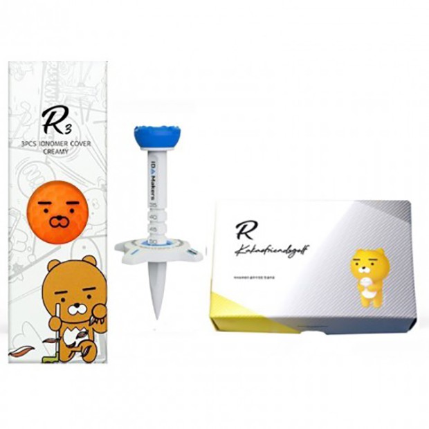 • [카카오골프공] R3 네온 컬러볼 3구 골프공 [아이디메이커스] 에이밍 높이조절 골프티 선물세트