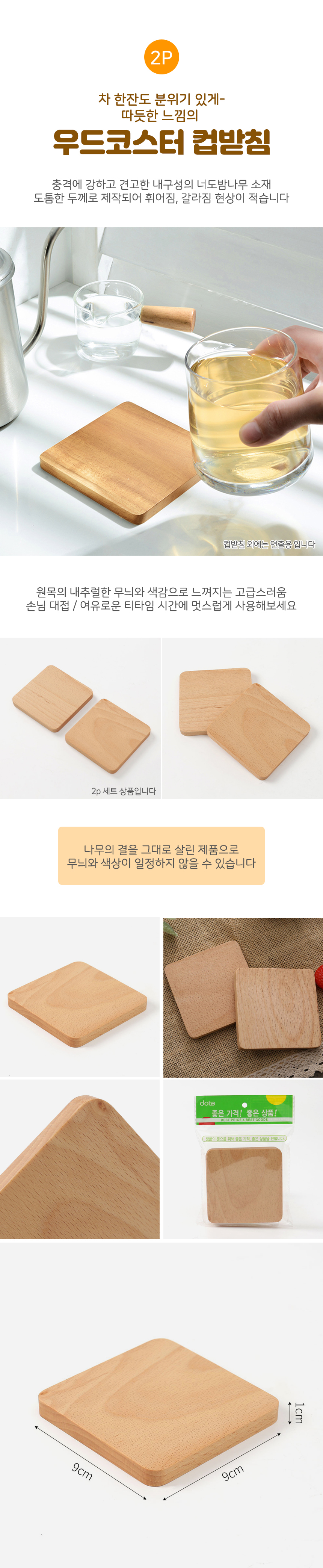 • 심플 무드 플랫사각 우드코스터 컵받침 2p 티코스터