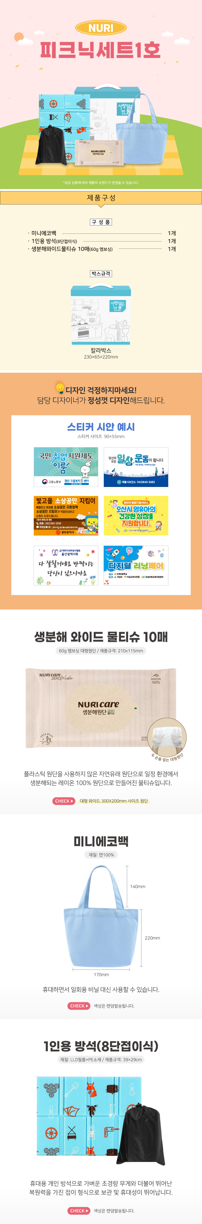 • 누리 피크닉세트 1호 (1인용방석,미니에코백)