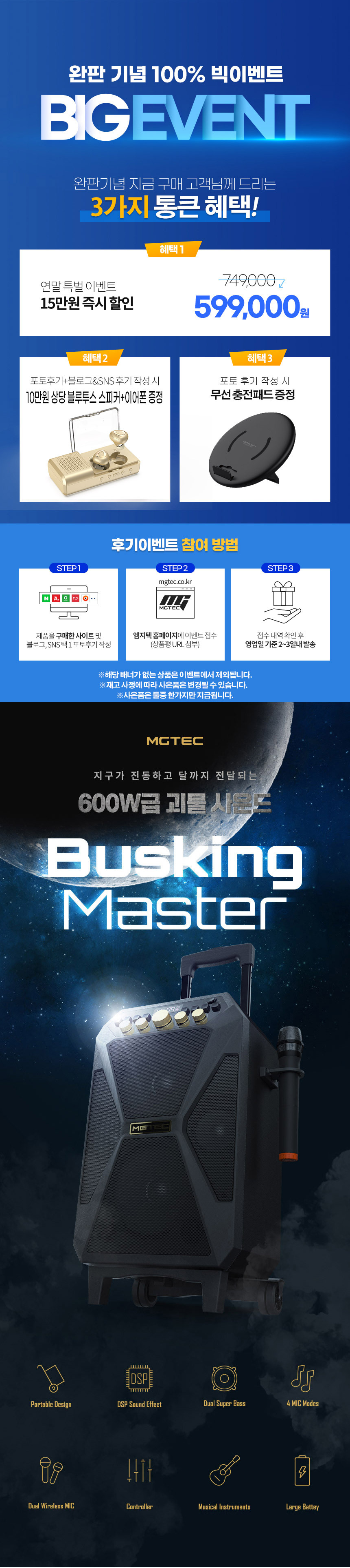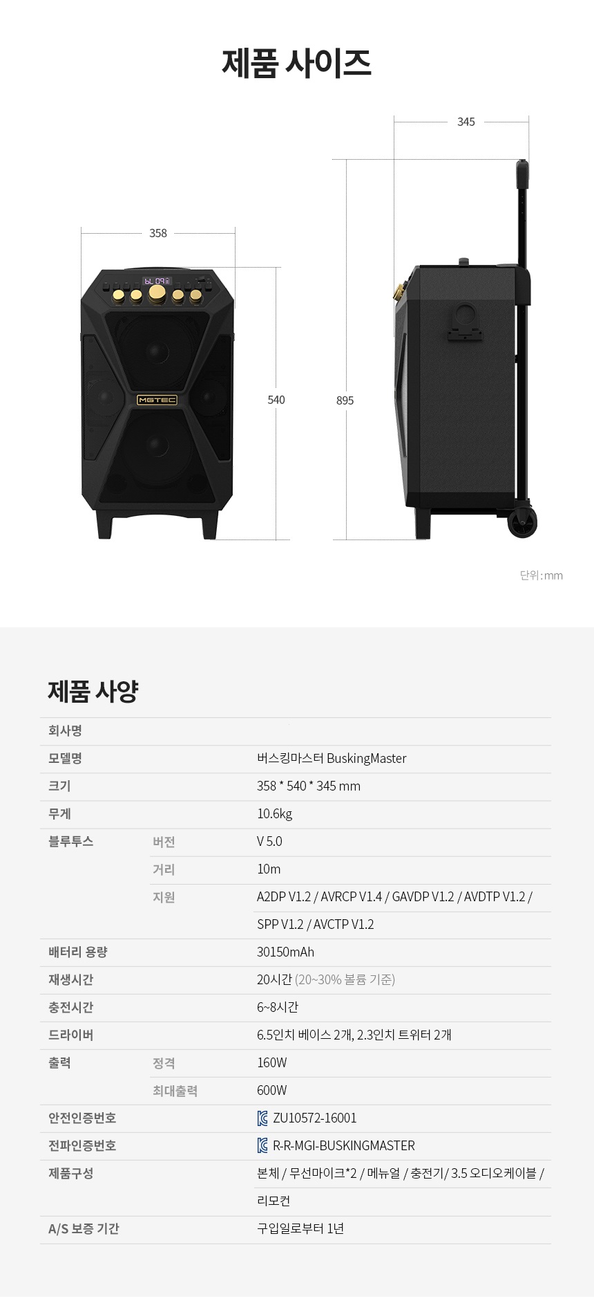• [버스킹 마스터] 블루투스 스피커 600W / 무선마이크 / 이동식스피커 /