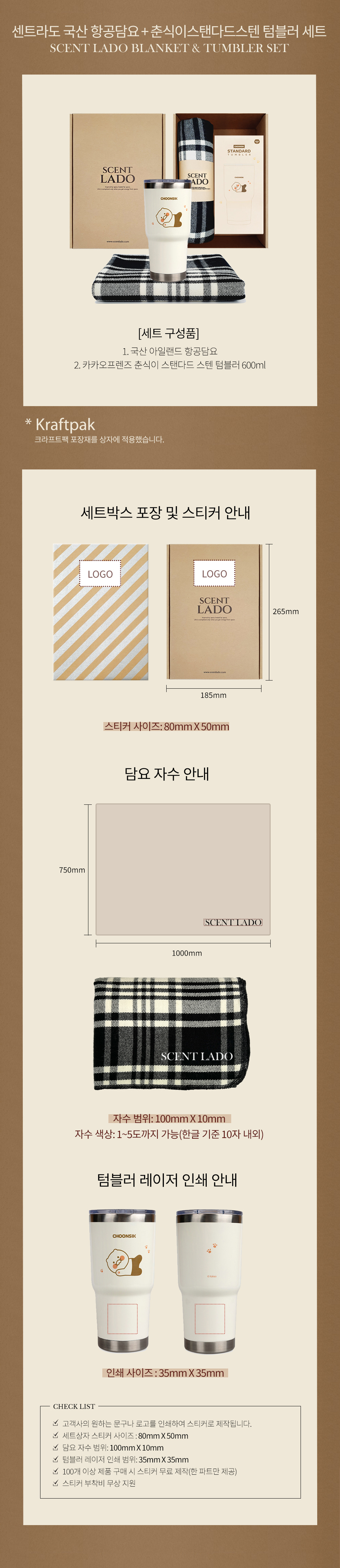 • 센트라도 국산 항공담요+카카오 춘식이스탠다드 스텐 텀블러 세트