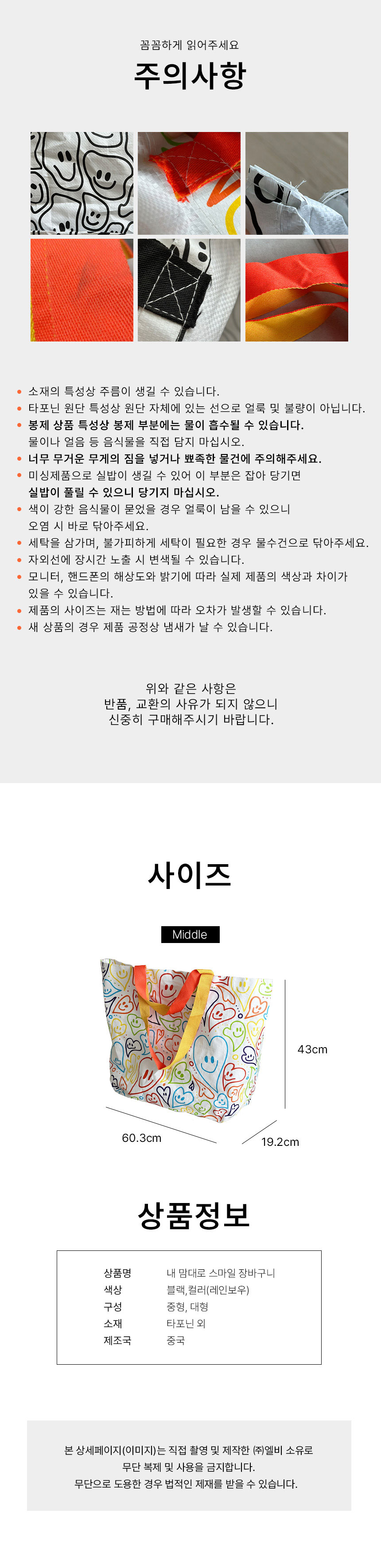 • 내 맘대로 스마일 장바구니 M 사이즈 ( 블랙 / 컬러)