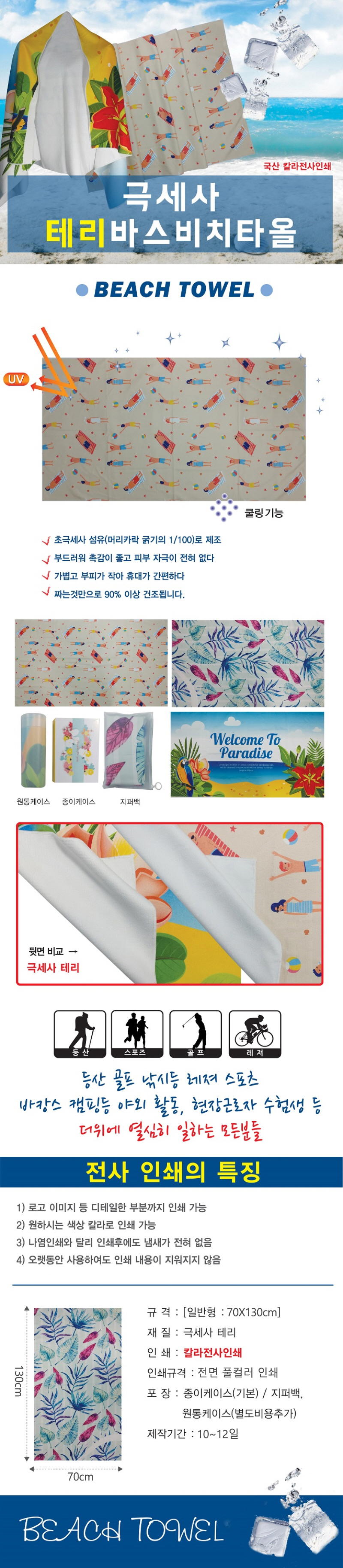 • 홍보 응원 판촉 기념 답례품 스포츠 비치타올 바스타올 전면인쇄 테리 70x130