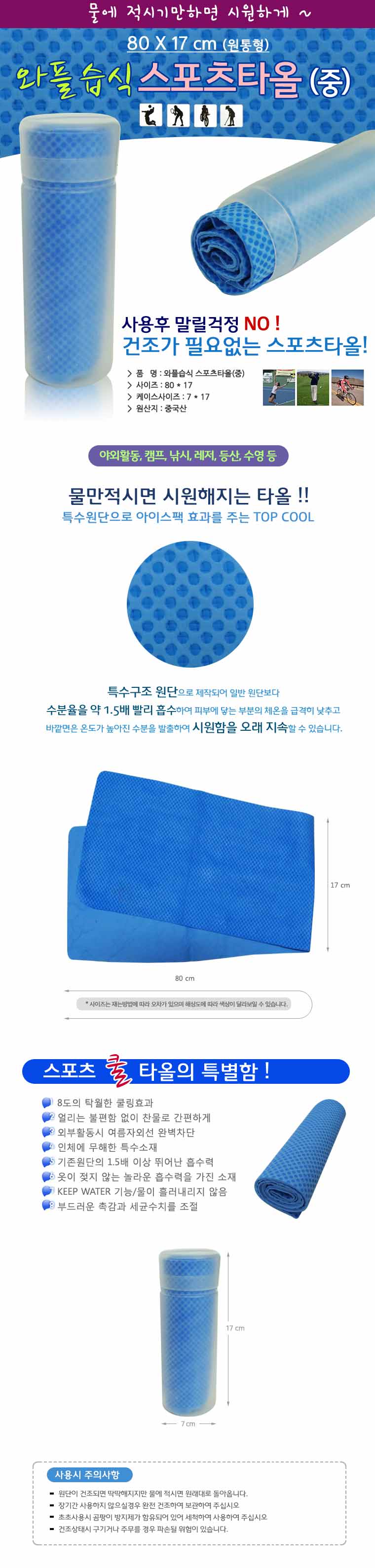 • {와플습식타올(원통형-중)}스포츠타올/쿨타올/습식타올/인쇄가능