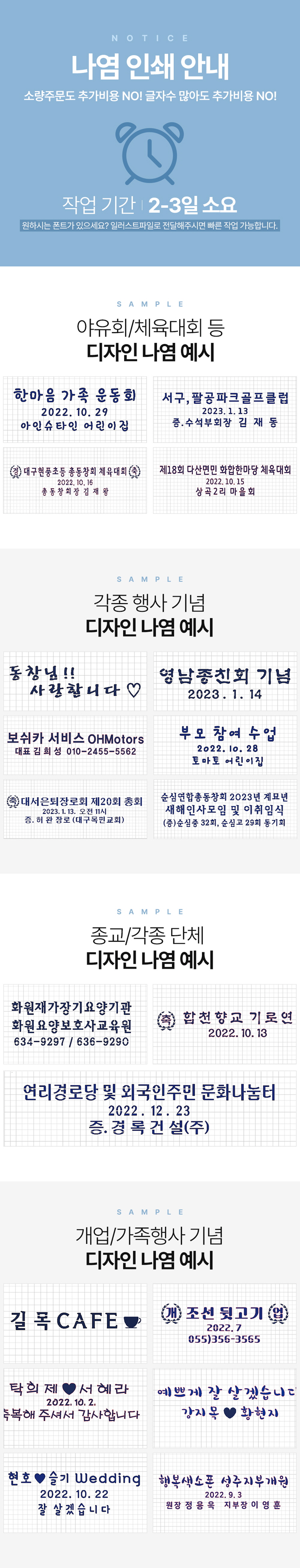 • 국내택배 배송비는 무료배송을 원칙으로 하나 제작상품에 따라 상이하게 적용될 수 있습니다.
