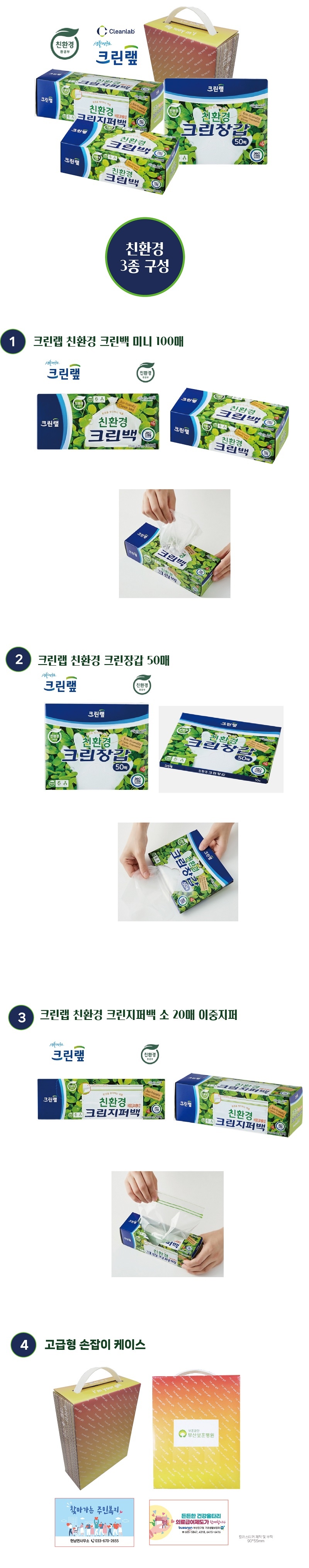• 크린랩 친환경 3종세트 (크린백+크린장갑+지퍼백) [크린랲]