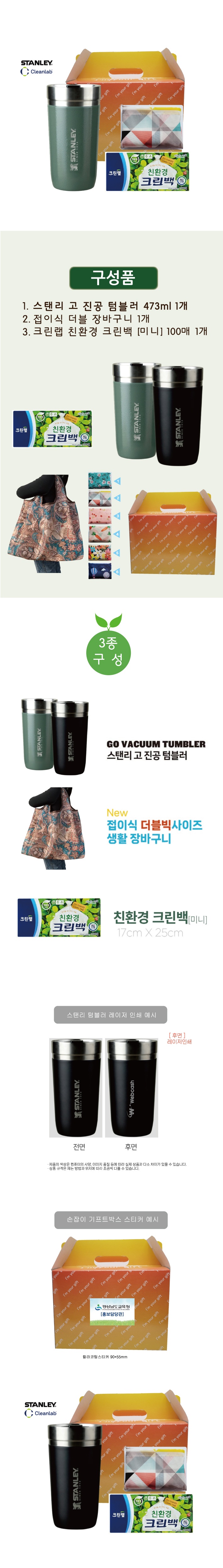 • 지구생각 친환경 3종세트(텀블러473ml+시장가방+크린랩친환경크린백 [크린랲])