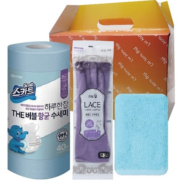 • 크리넥스스카트항균버블수세미+크린랩고무장갑중형1개+주방타올 (3종) [크린랲]