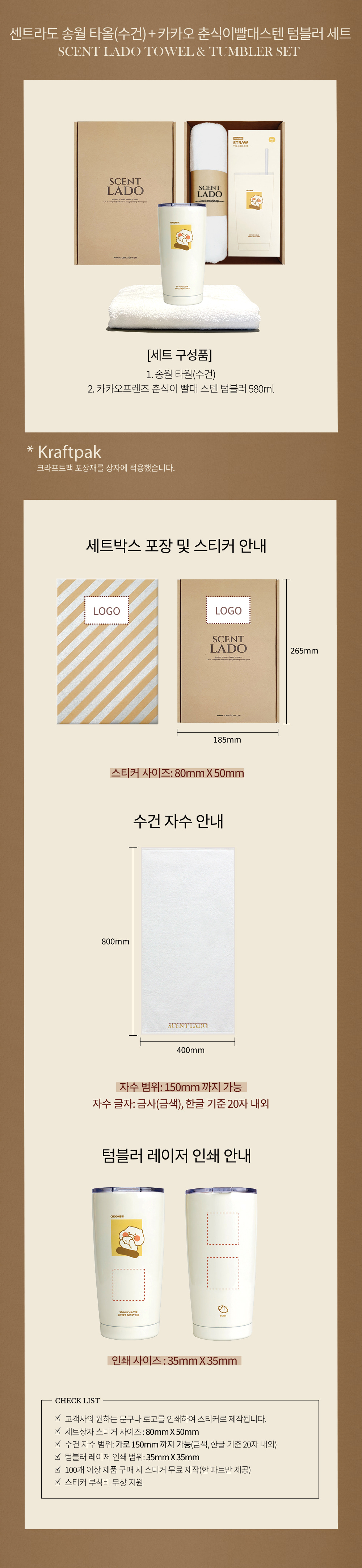 • 센트라도 송월 타올(수건)+카카오 춘식이빨대스텐 텀블러 세트