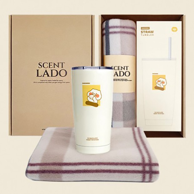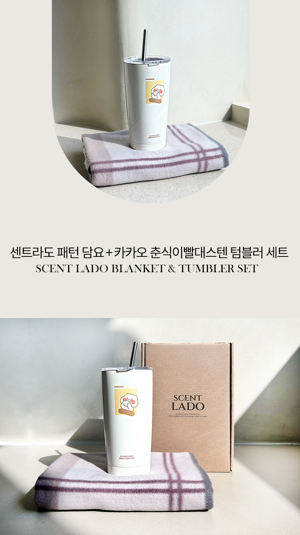 • 센트라도 패턴 담요+카카오 춘식이빨대스텐 텀블러 세트