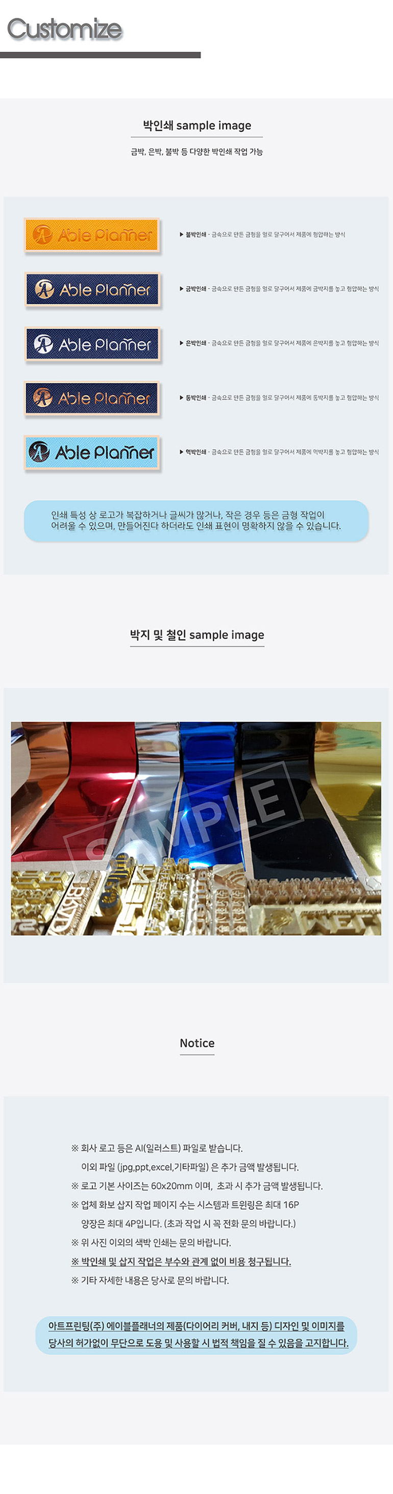 * 인쇄비(불박,금박,은박 등), 삽지비 별도 문의