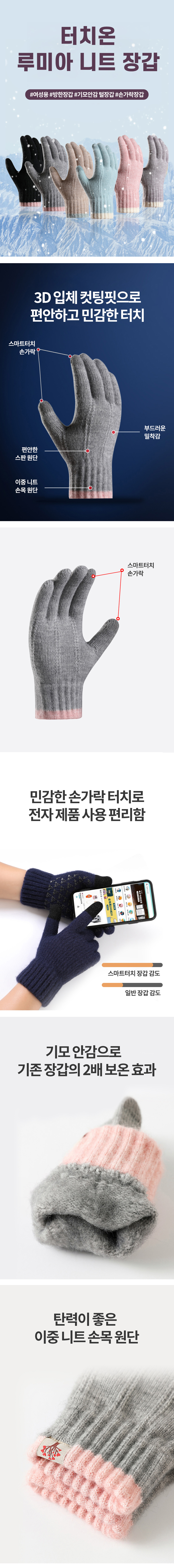 • 스마트터치 트윌 니트장갑 여성용 방한장갑 기모안감 털장갑 손가락장갑