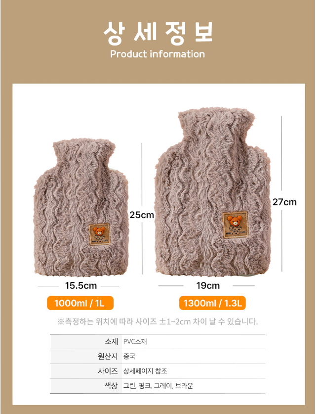 • 곰돌이 패치 물주머니 곰 손난로 찜질팩 허리 생리통 감기 핫팩