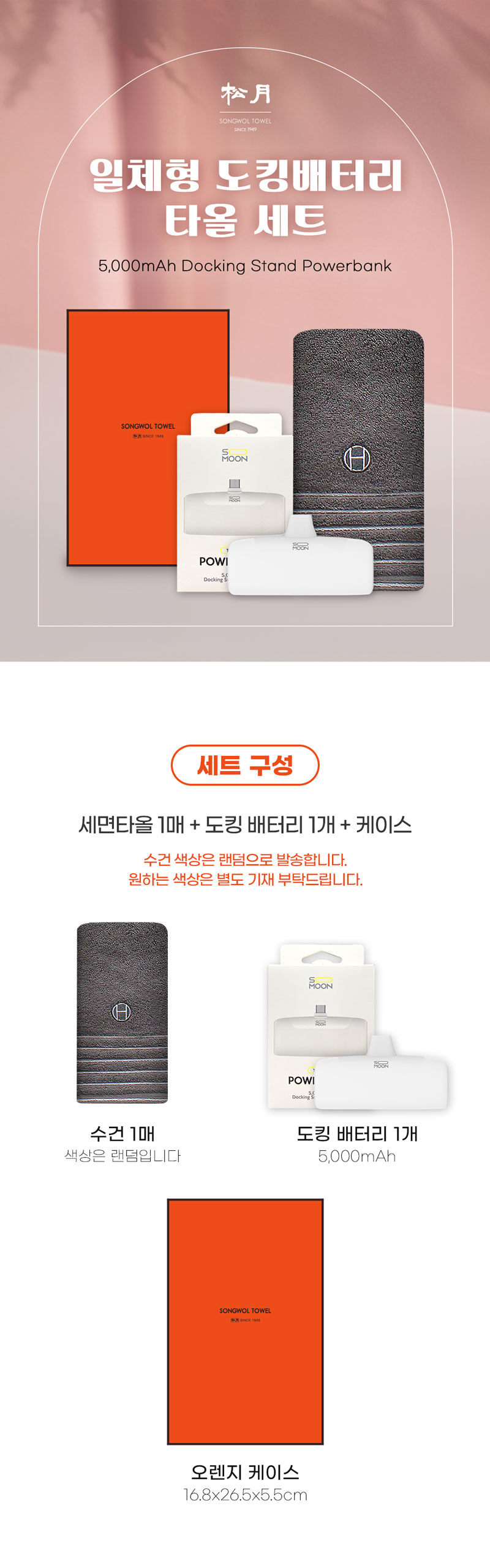 • 송월 도킹 보조배터리 5000mAh 세트 (필라라인40 타올 1매 + 도킹보조배터리 1개)