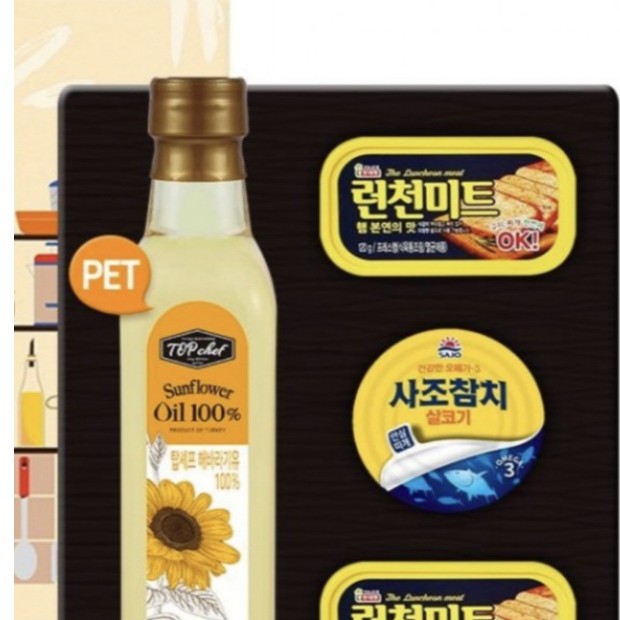 • 해바라기유+ 사조참치1+ 런치미트2 명절 선물 세트, 스팸 해바라기유 식용유 설선물 햄선물 햄세트 설날 추석