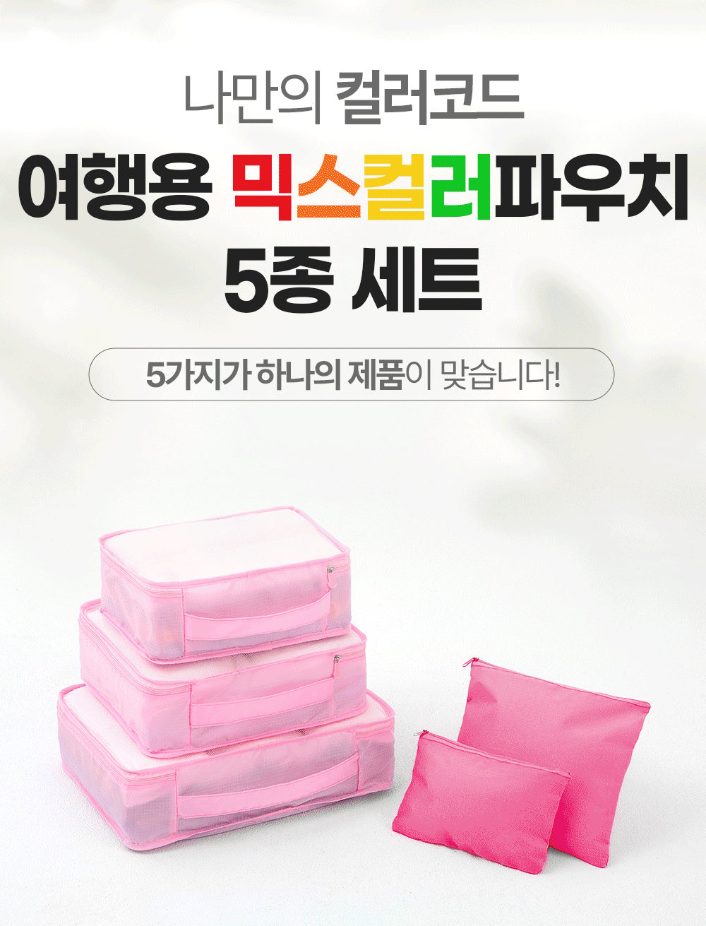 • 내맘대로 8컬러 믹스 여행용파우치 5종세트 캐리어정리 실속구성