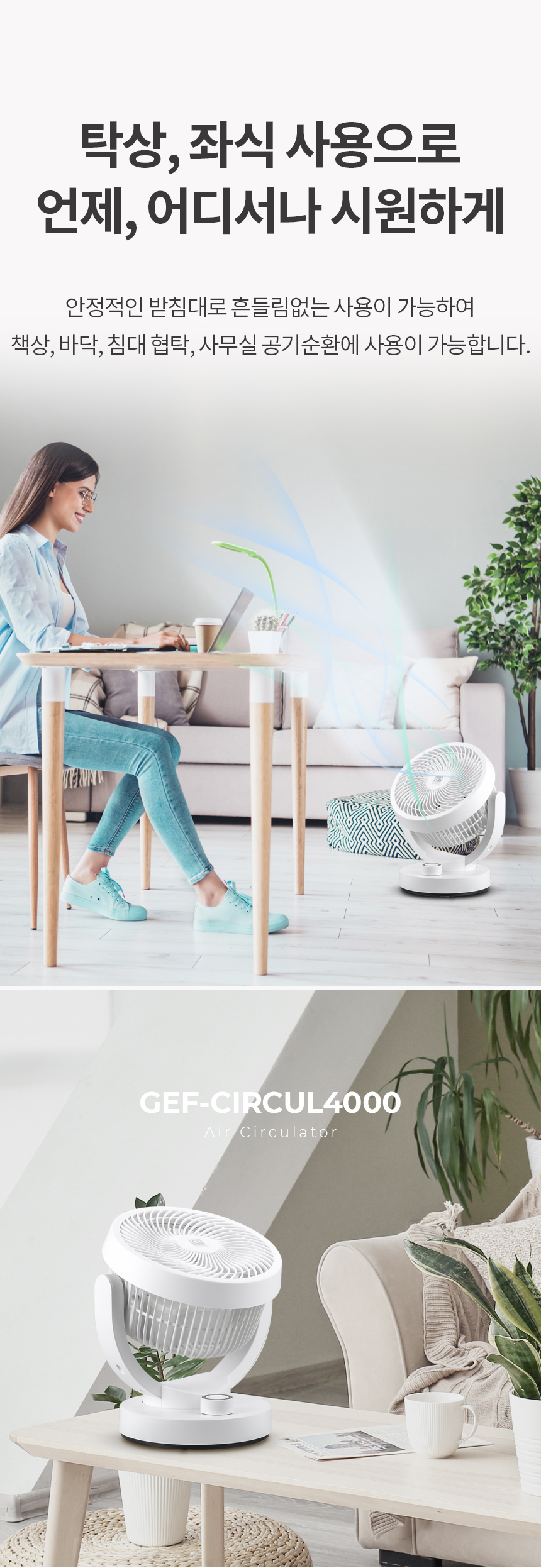 • GEF-CIRCUL4000 저소음 선풍기 공기순환 3단 계 조절 써큘레이터 캠핑 탁상용
