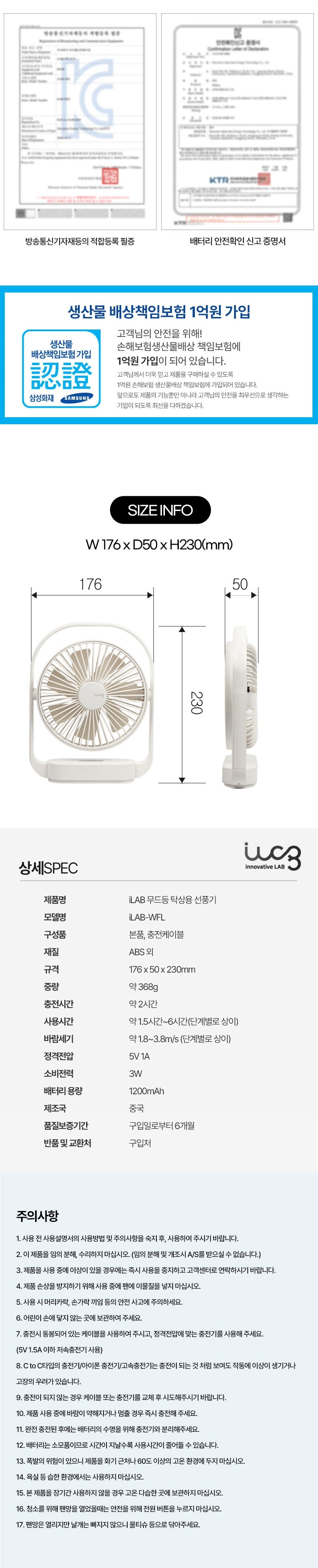 • 아이랩 팬큘레이터 무드등 탁상용 선풍기