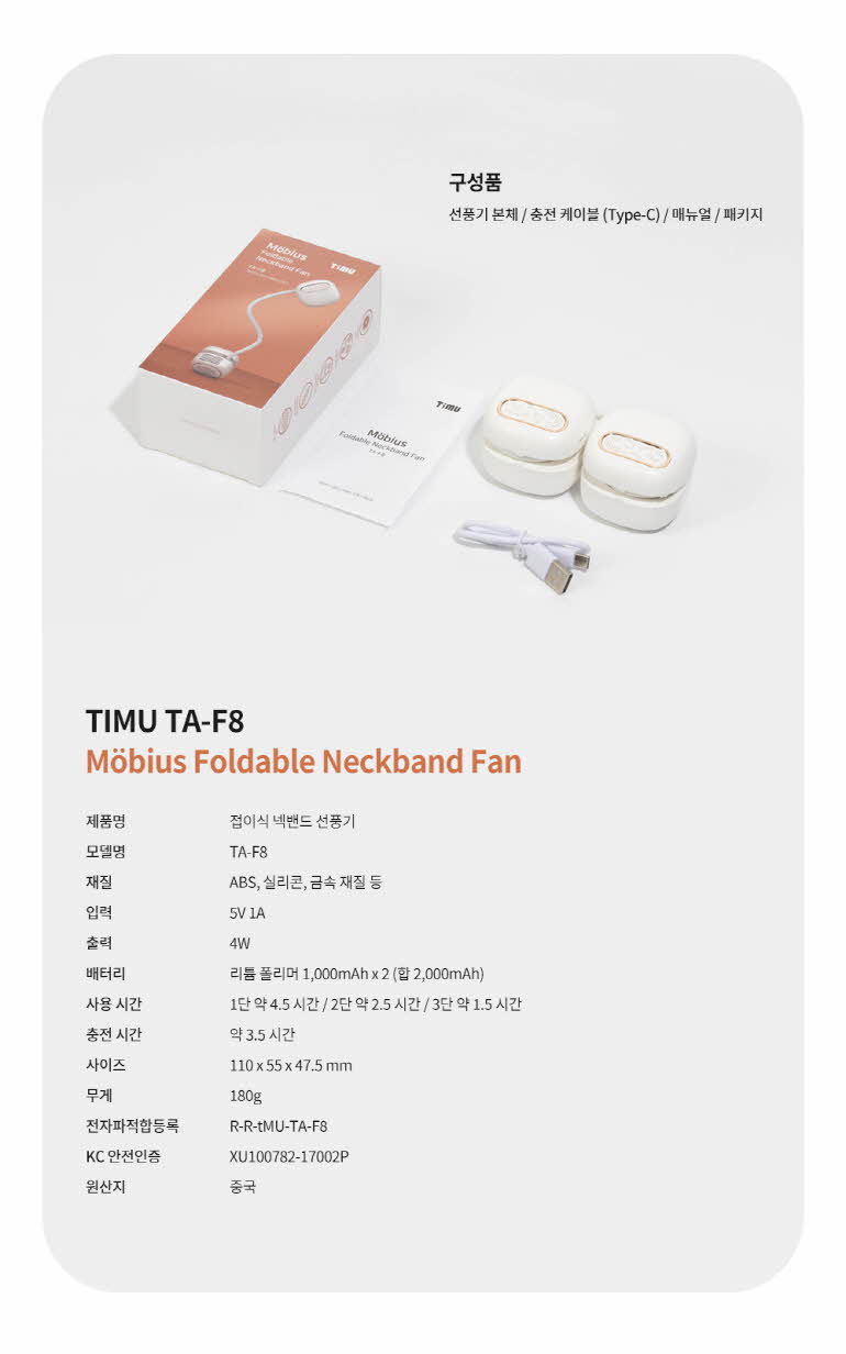 • 뫼비우스 접이식 넥밴드 선풍기 TA-F8