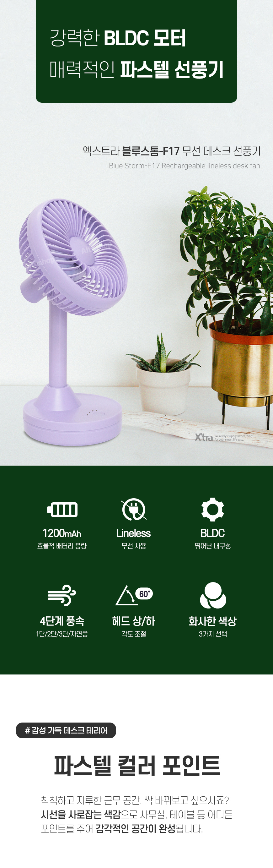 • 엑스트라 블루스톰-F17 무선 데스크 선풍기