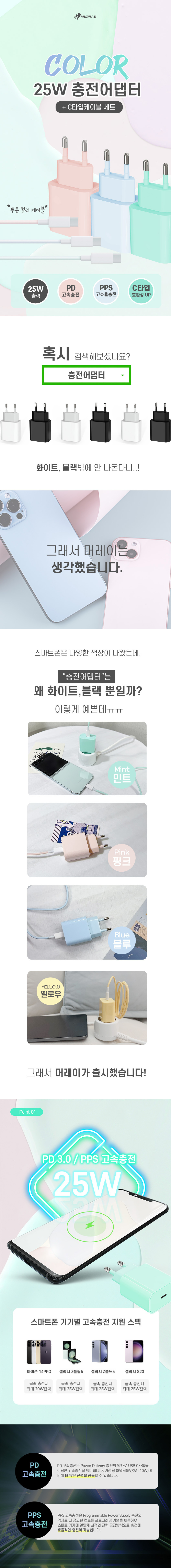 • 머레이 컬러 25W PD 고속 충전 어댑터 + C타입 케이블 세트