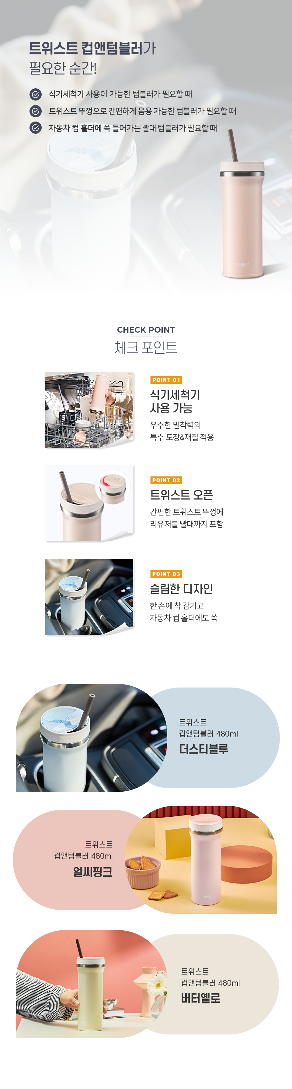 • [써모스] 트위스트 컵앤텀블러 480ml TKHB-480K