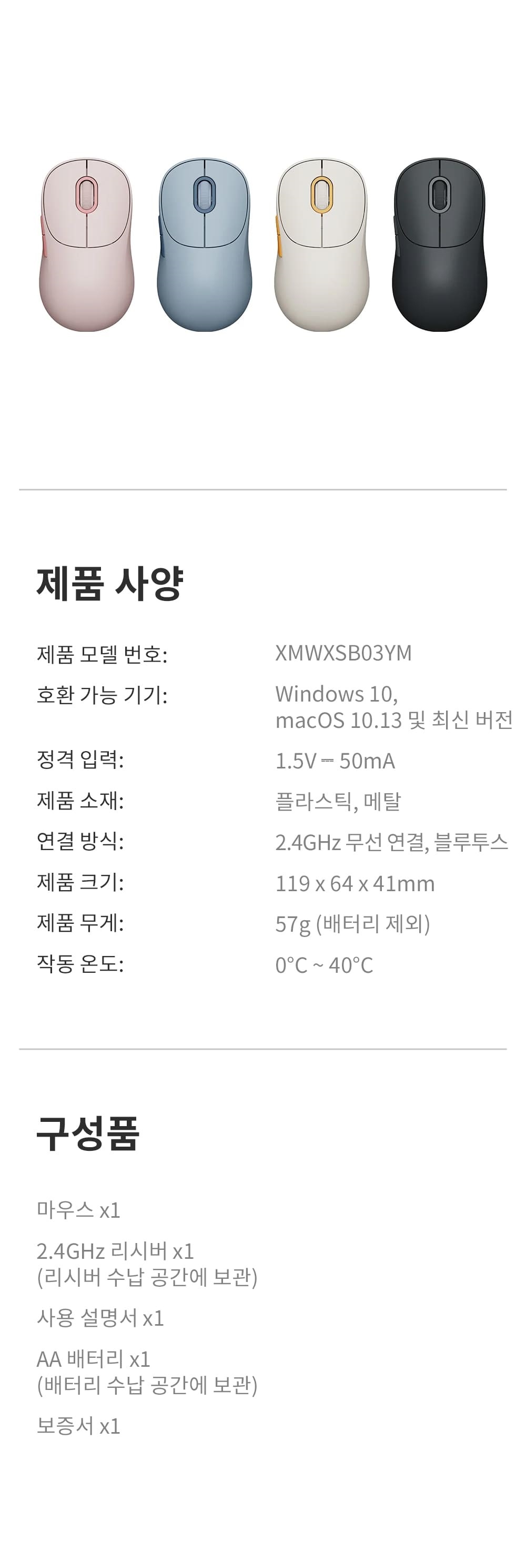• 샤오미 무선 마우스 3 블루투스 무소음 사무용 노트북 인체공학 손목 안아픈 편한 저소음