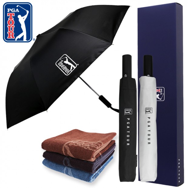 • PGA 2단완전자동 암막 우양산+170g 죽사타올 세트