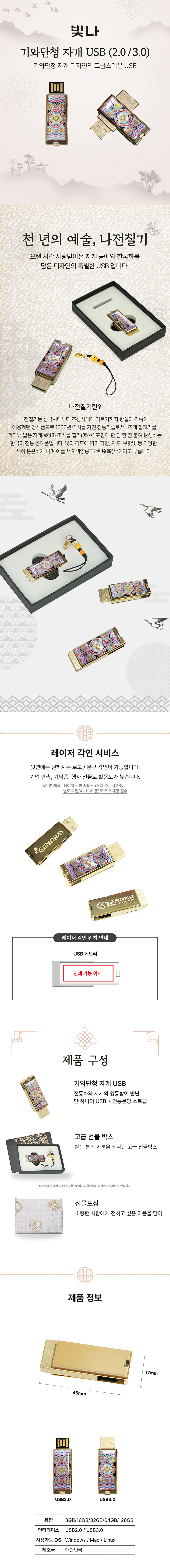 • 빛나 기와단청 자개 USB메모리 (USB2.0) 8GB~128GB