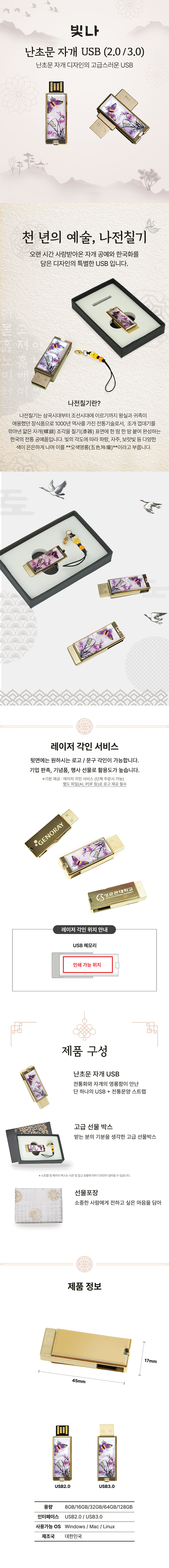 • 빛나 난초문 자개 USB메모리 (USB2.0) 8GB~128GB
